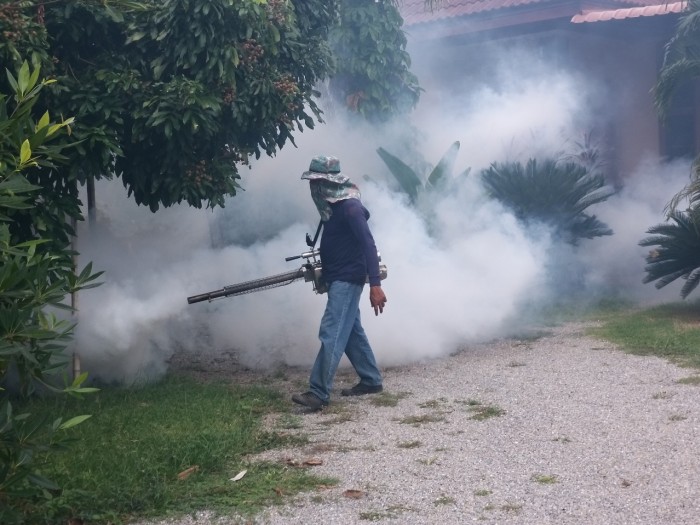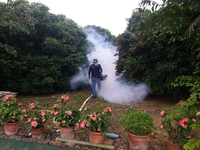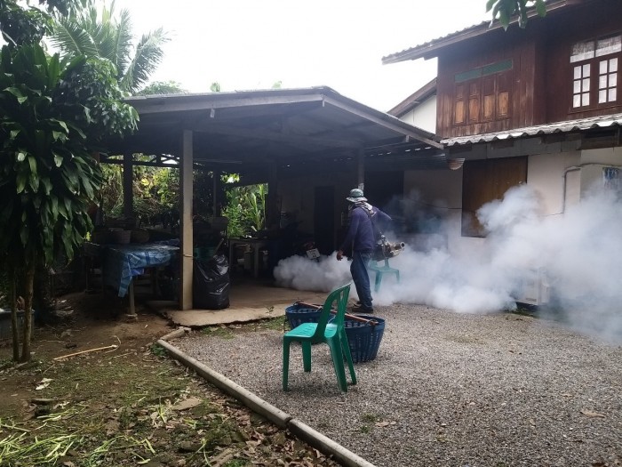 โดยเน้นการ ทำลายภาชนะที่มีน้ำขังซึ่งจะเป็นแหล่งเพาะพันธุ์ยุง ใส่สารเคมีกำจัดลูกน้ำยุงลาย ในภาชนะที่มีน้ำขัง พ่นหมอกควันบริเวณอาคารบ้านเรือน ที่อยู่อาศัยและสภาพแวดล้อมโดยรอบ เพื่อกำจัดยุงลายตัวเต็มวัย โดยลงพื้นที่ดำเนินการควบคุมโรค จำนวน 3 ครั้ง ตามมาตรการ 0, 3, 7 วัน เพื่อเป็นการควบคุมเฝ้าระวังโรคในพื้นที่ ต่อไป ...