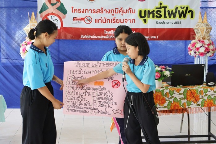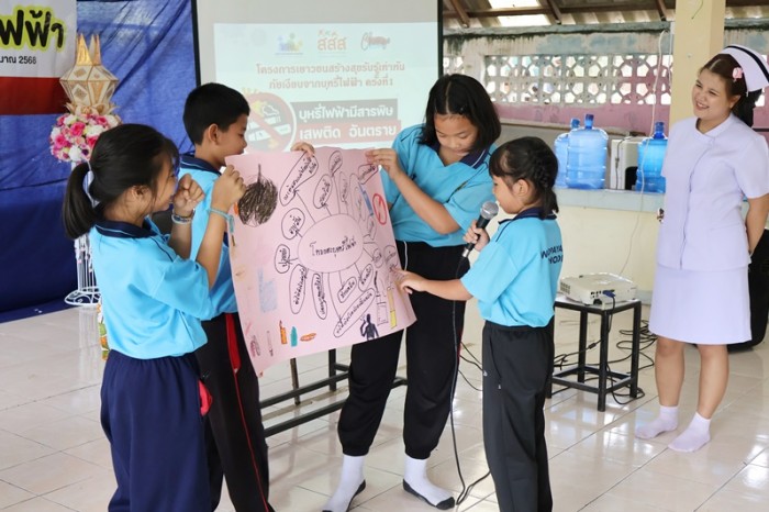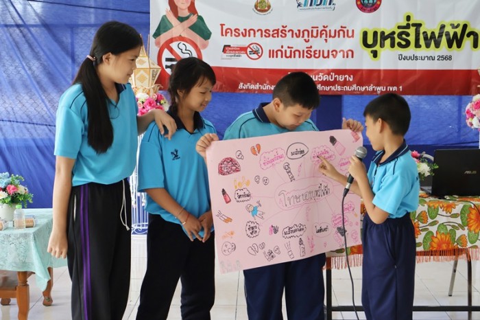 กิจกรรมดังกล่าว มีวัตถุประสงค์เพื่อให้ความรู้ ความเข้าใจ ถึงอันตราย และโทษของการใช้บุหรี่ไฟฟ้า ผลกระทบต่อสุขภาพจิตและสังคม การปฏิเสธและหลีกเลี่ยงการเข้าไปยุ่งเกี่ยวกับบุหรี่ไฟฟ้าเมื่อถูกชักจูง โดยมี นางสาวธิติมา ศรีบุญเรือง พยาบาลวิชาชีพ จากโรงพยาบาลหริภุญชัย เมโมเรียล พ.ต.ต.สุเมธานนท์ ชัยยา สารวัตรป้องกันปราบปราม และส.ต.ท.ทรงฤทธิ์ วันมาละ ผู้บังคับหมู่ป้องกันปราบปราม สถานีตำรวจภูธรเมืองลำพูน มาเป็นวิทยากรบรรยายให้ความรู้ ในหัวข้อ อันตรายและโทษของการใช้บุหรี่ไฟฟ้าในรูปแบบต่างๆ ผลกระทบต่อสุขภาพกาย สุขภาพใจ และสังคม จากการใช้บุหรี่ไฟฟ้า และวิธีการปฏิเสธและหลีกเลี่ยง ไม่ให้เข้าไปยุ่งเกี่ยวกับบุหรี่ไฟฟ้า เมื่อถูกชักจูงหรือชักชวนให้ใช้บุหรี่ไฟฟ้าจากบุคคลใกล้ชิด และกิจกรรมแบ่งกลุ่มระดมสมองเกี่ยวกับอันตรายและโทษของบุหรี่ไฟฟ้า พร้อมมอบเกียรติบัตร ให้กับผู้เข้าร่วมโครงการฯ ณ หอประชุมโรงอาหารโรงเรียนวัดป่ายาง