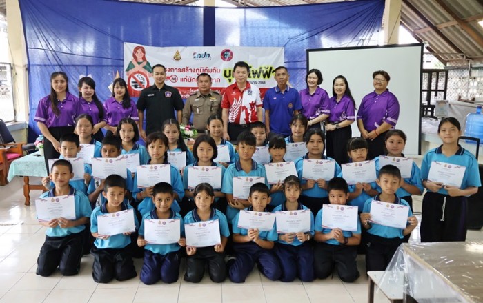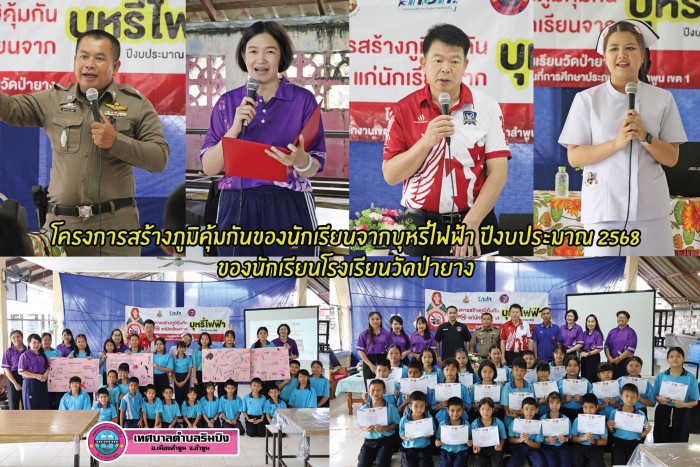 วันที่ 23 สิงหาคม 2568 เวลา 09.00 น. โรงเรียนวัดป่ายาง ขอรับการสนับสนุนงบประมาณจาก กองทุนหลักประกันสุขภาพเทศบาลตำบลริมปิง เพื่อจัดทำโครงการสร้างภูมิคุ้มกันของนักเรียนจากบุหรี่ไฟฟ้า ปีงบประมาณ 2568 ให้กับนักเรียนระดับชั้น ประถมศึกษาปีที่ 3 - 6 ของ โรงเรียนวัดป่ายาง โดยมีนายเอนก มหาเกียรติคุณ นายกเทศมนตรีตำบลริมปิง เป็นประธานกล่าวเปิดโครงการฯ นางสาวมัลลิกา ศุภอักษร รักษาการผู้อำนวยการโรงเรียนวัดป่ายาง กล่าวรายงานวัตถุประสงค์ของการดำเนินโครงการ มีนายโสภณ ลาพิงค์ ผู้ใหญ่บ้านหมู่ที่ 8 บ้านป่ายาง คณะครูโรงเรียนวัดป่ายาง เข้าร่วมกิจกรรม