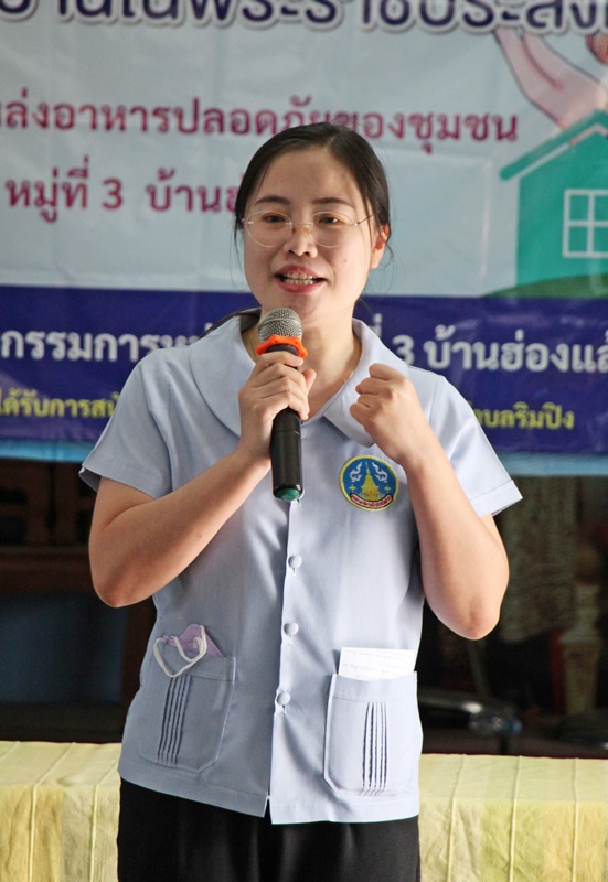 กิจกรรมดังกล่าว ได้รับเกียรติจากนางสาวศิริพร สอนใต้ พยาบาลวิชาชีพปฏิบัติการ และว่าที่ร้อยตรีสิงหา พริบไหว นักวิชาการสาธารณสุขชำนาญการ จากโรงพยาบาลส่งเสริมสุขภาพตำบล ตำบลริมปิง มาเป็นวิทยากรเวทีแลกเปลี่ยนวิธีการปฏิบัติ เพื่อให้มีสุขภาพดี และตรวจคัดกรองความเสี่ยงตามแบบประเมิน และตรวจคัดกรองสารเคมีในเลือด เพื่อให้ผู้เข้าร่วมกิจกรรมมีความรู้ความเข้าใจเกี่ยวกับอาหารปลอดภัย มีความตระหนักในการดูแลสุขภาพและมีการปรับเปลี่ยนพฤติกรรม หลีกเลี่ยงพฤติกรรมเสี่ยง