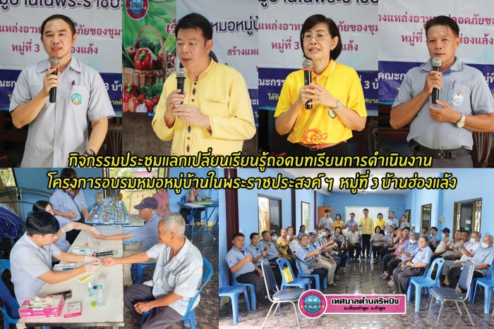 วันที่ 20 ตุลาคม 2568 คณะกรรมการหมู่บ้าน หมู่ที่ 3 บ้านฮ่องแล้ง ได้จัดกิจกรรมประชุมแลกเปลี่ยนเรียนรู้ถอดบทเรียนการดำเนินงาน ตามโครงการอบรมหมอหมู่บ้านในพระราชประสงค์ สร้างแหล่งอาหารปลอดภัยของชุมชน โดยมีนายเอนก มหาเกียรติคุณ นายกเทศมนตรีตำบลริมปิง เป็นประธานเปิดการประชุมฯ มีนางจันทร์เพ็ญ สุทธิจิระพันธ์ ปลัดเทศบาลตำบลริมปิง นายวิทูรย์ ทาแกง ผู้ใหญ่บ้าน หมู่ที่ 3 บ้านฮ่องแล้ง นางสาวคนึงนิจ ดาวเวียงกัน ผู้อำนวยการกองสาธารณสุขและสิ่งแวดล้อม นายบัญชา ประสานสิน ผู้อำนวยการโรงพยาบาลส่งเสริมสุขภาพตำบล ตำบลริมปิง และพนักงานเทศบาลตำบลริมปิง เข้าร่วมกิจกรรมฯ ณ อาคารอเนกประสงค์หมู่ที่ 3 บ้านฮ่องแล้ง