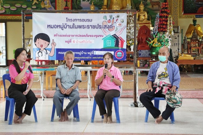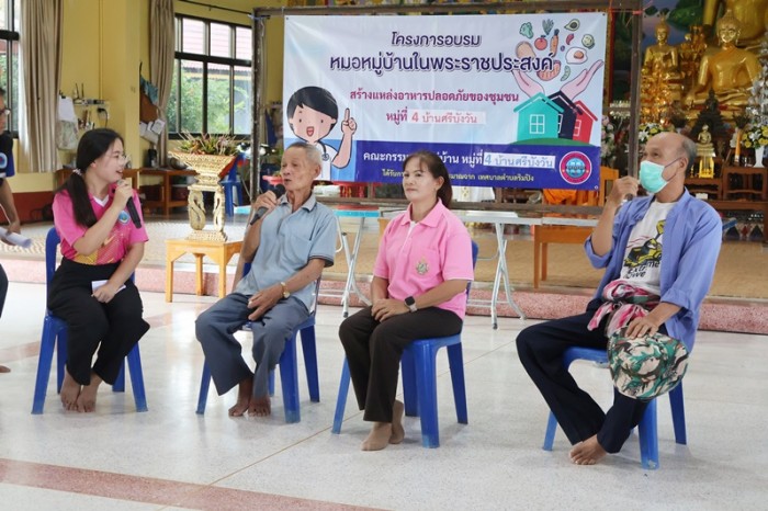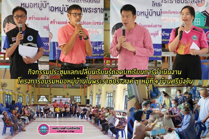 วันที่ 21 ตุลาคม 2568 เวลา 13.30 น. คณะกรรมการหมู่บ้าน หมู่ที่ 4 บ้านศรีบังวัน ได้จัดกิจกรรมประชุมแลกเปลี่ยนเรียนรู้ถอดบทเรียนการดำเนินงาน ตามโครงการอบรมหมอหมู่บ้านในพระราชประสงค์ สร้างแหล่งอาหารปลอดภัยของชุมชน โดยมีนายเอนก มหาเกียรติคุณ นายกเทศมนตรีตำบลริมปิง เป็นประธานเปิดการประชุม มีนายพัฒนศักดิ์ ศิริ ผู้ใหญ่บ้าน หมู่ที่ 4 บ้านศรีบังวัน นายนิกร กาวิน ประธานอสม. หมู่ที่ 4 บ้านศรีบังวัน นางสาวคนึงนิจ ดาวเวียงกัน ผู้อำนวยการกองสาธารณสุขและสิ่งแวดล้อม เจ้าหน้าที่จากโรงพยาบาลส่งเสริมสุขภาพตำบล ตำบลริมปิง และพนักงานเทศบาลตำบลริมปิง เข้าร่วมกิจกรรมฯ ณ ศาลาบำเพ็ญบุญ วัดศรีบังวัน