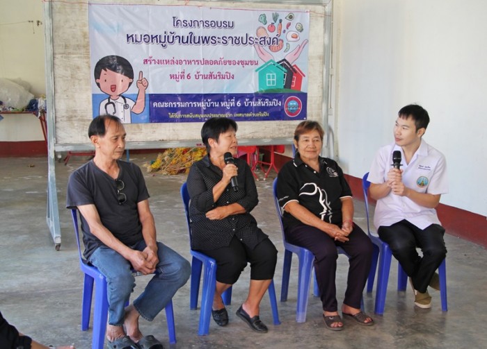 กิจกรรมดังกล่าว ได้รับเกียรติจากนางสาวรัชฎาวรรณ การะพิงค์ นักวิชาการสาธารณสุข นายนิติพันธ์ จันทะเปื้อน นักวิชาการสาธารณสุขปฏิบัติการ นางสาวอรณา ตาสุยะ แพทย์แผนไทย จากโรงพยาบาลส่งเสริมสุขภาพตำบล ตำบลริมปิง มาเป็นวิทยากรเวทีแลกเปลี่ยนวิธีการปฏิบัติ เพื่อให้มีสุขภาพดี และตรวจคัดกรองความเสี่ยงตามแบบประเมิน และตรวจคัดกรองสารเคมีในเลือด เพื่อให้ผู้เข้าร่วมกิจกรรมมีความรู้ความเข้าใจเกี่ยวกับอาหารปลอดภัย มีความตระหนักในการดูแลสุขภาพและมีการปรับเปลี่ยนพฤติกรรม หลีกเลี่ยงพฤติกรรมเสี่ยง