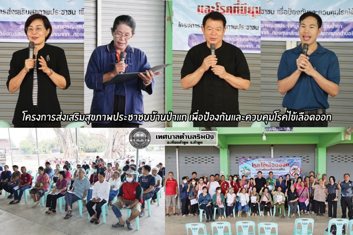 โดยได้รับเกียรติจากนายนิติพันธ์ จันทะเปื้อน ตำแหน่งนักวิชาการสาธารณสุขปฏิบัติการ จากโรงพยาบาลส่งเสริมสุขภาพตำบล ตำบลริมปิง มาเป็นวิทยากรบรรยายให้ความรู้ เรื่องสถานการณ์โรคไข้เลือดออก ความรู้เกี่ยวกับโรคไข้เลือดออก โรคที่มียุงเป็นพาหะนำโรค การป้องกันโรคไข้เลือดออก 4 สายพันธุ์ การรักษาและควบคุมโรค พร้อมตอบข้อซักถาม เพื่อให้ประชาชนมีความรู้ความเข้าใจเกี่ยวกับโรคไข้เลือดออก และโรคที่มียุงเป็นพาหะนำโรค มีการปฏิบัติตนที่ถูกต้อง เหมาะสม เพื่อส่งเสริมคุณภาพชีวิตที่ดี
