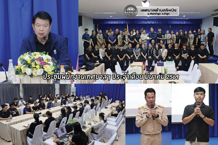 วันที่ 30 มีนาคม 2569 เวลา 13.30 น. นายเอนก มหาเกียรติคุณ นายกเทศมนตรีตำบลริมปิง ประธานเปิดการประชุมพนักงานเทศบาล ลูกจ้างประจำ และพนักงานจ้างเทศบาลตำบลริมปิง ประจำเดือน มีนาคม 2569 มีนางจันทร์เพ็ญ สุทธิจิระพันธ์ ปลัดเทศบาลตำบลริมปิง พร้อมด้วยหัวหน้าส่วนราชการ พนักงานเทศบาล และพนักงานจ้างเทศบาลตำบลริมปิง เข้าร่วมการประชุมเพื่อมอบนโยบายการทำงาน สรุปผลการดำเนินกิจกรรม/โครงการ ที่ผ่านมาของของสำนัก/กอง ปรึกษาหารือเกี่ยวกับการจัดกิจกรรมของเทศบาล สอบถามปัญหาและอุปสรรคต่างๆในการทำงาน เพื่อหาแนวทางในการแก้ไข ให้การดำเนินงานมีประสิทธิภาพมากยิ่งขึ้น ณ ห้องประชุม ชั้น 3 เทศบาลตำบลริมปิง