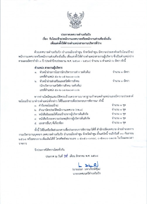 (ปลัดเทศบาลตำบลริมปิง) โทร.08-1531-5479