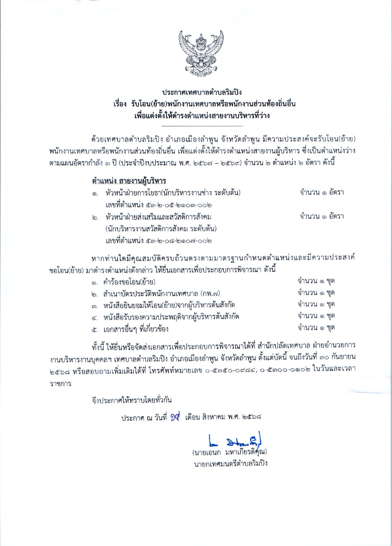 (นายกเทศมนตรีตำบลริมปิง) โทร.08-1716-7759