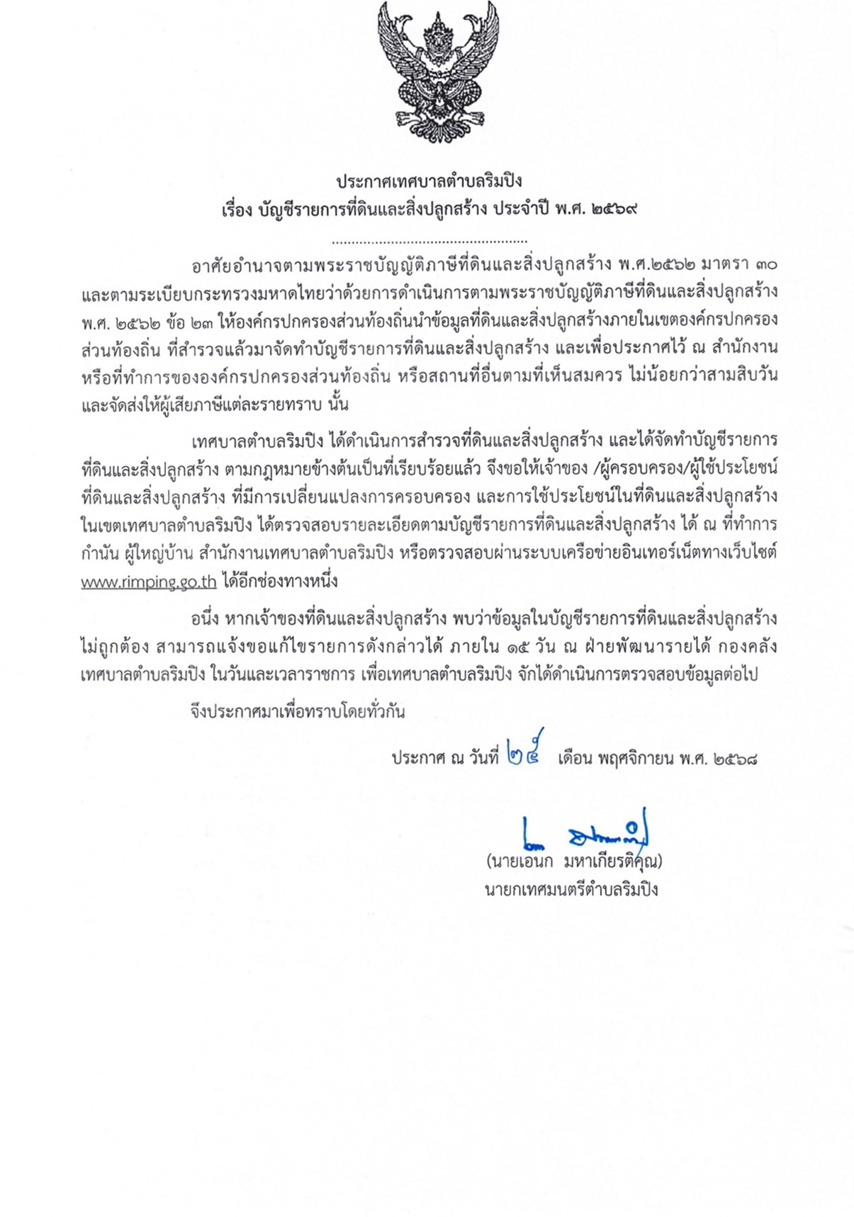 (นายกเทศมนตรีตำบลริมปิง) โทร.08-1716-7759