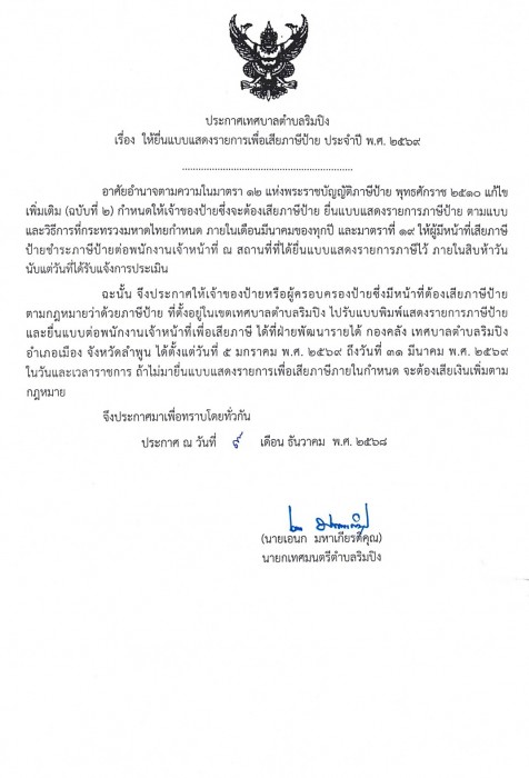 (นายกเทศมนตรีตำบลริมปิง) โทร.08-1716-7759