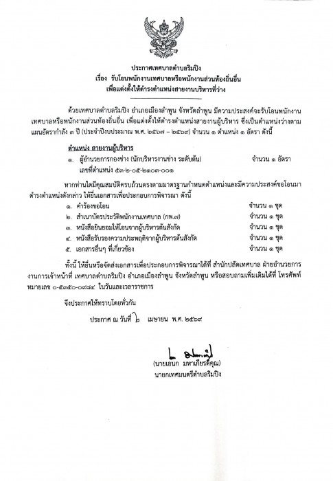 (ปลัดเทศบาลตำบลริมปิง) โทร.08-1531-5479