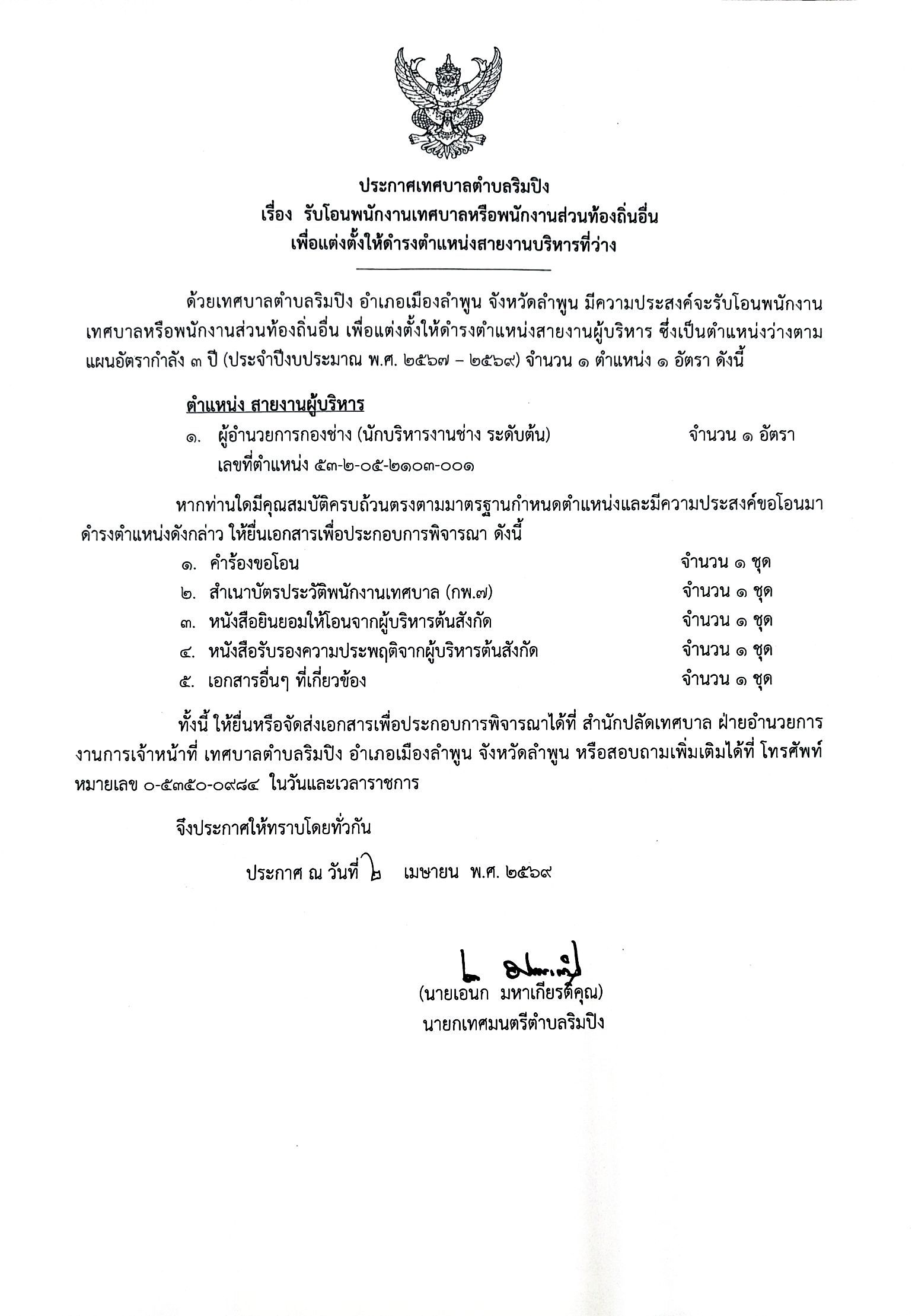 (นายกเทศมนตรีตำบลริมปิง) โทร.08-1716-7759